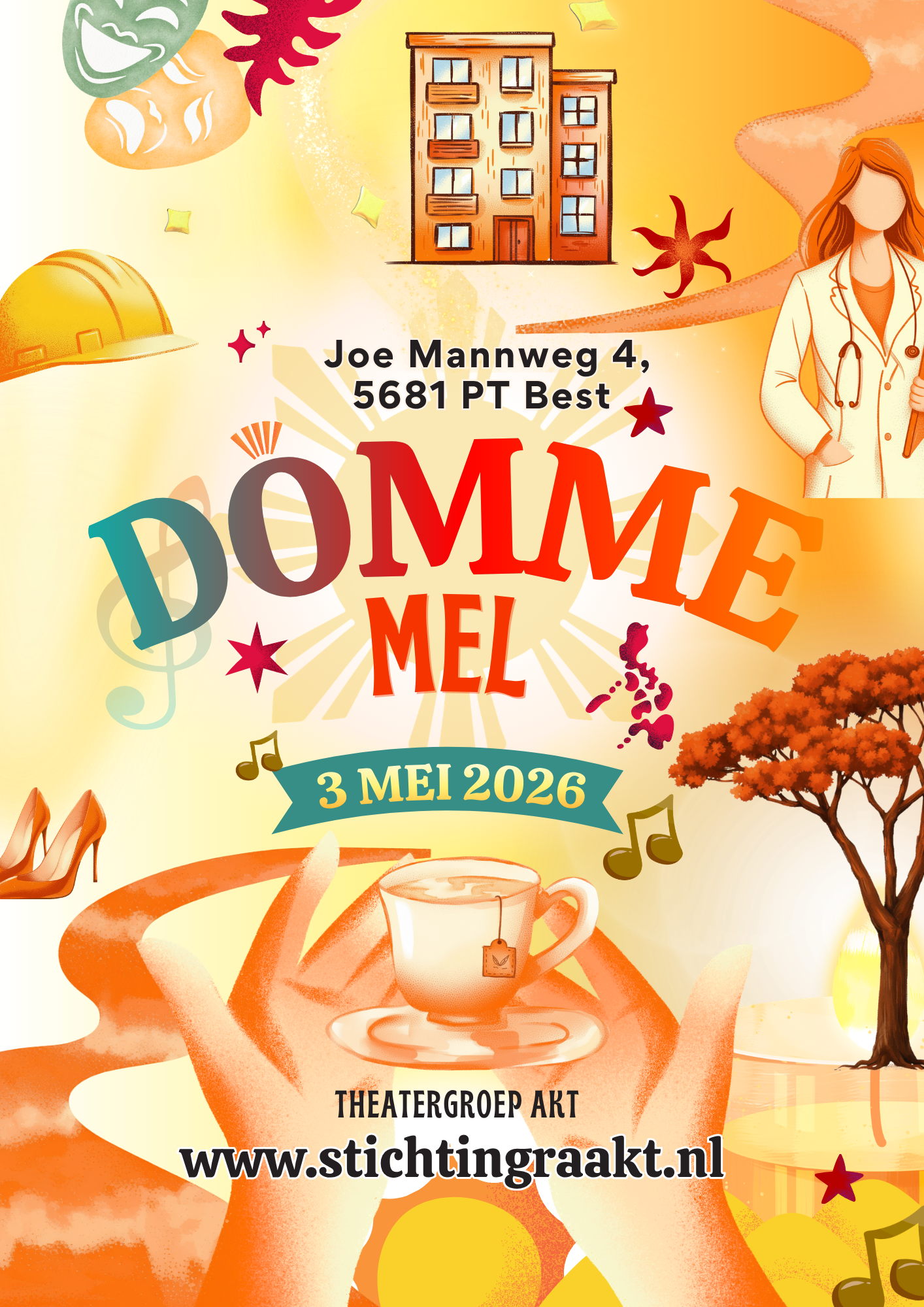 Wat Domme Mel zo bijzonder maakt voor Stichting Raakt, is de diepe betrokkenheid van jongeren bij elk aspect van de productie. Deze voorstelling, speciaal gemaakt voor en door jongeren, biedt hen de unieke kans om mee te denken over het decor, de kostuums, het script, de rollen en het thema. Het is een viering van creativiteit en jeugdige talentontwikkeling, en een perfect voorbeeld van hoe wij kunst toegankelijk maken en maatschappelijke betrokkenheid bevorderen door middel van podiumkunsten en cultuureducatie.